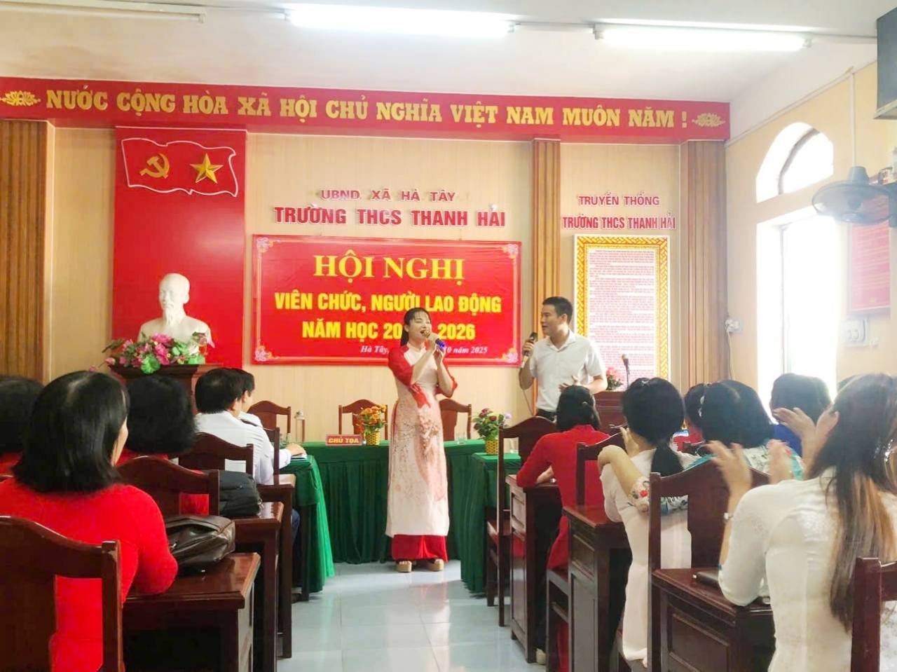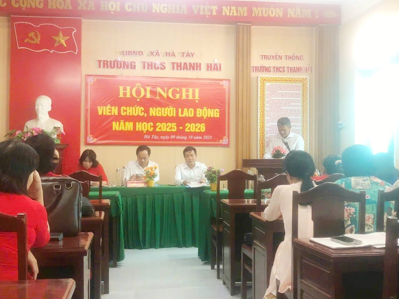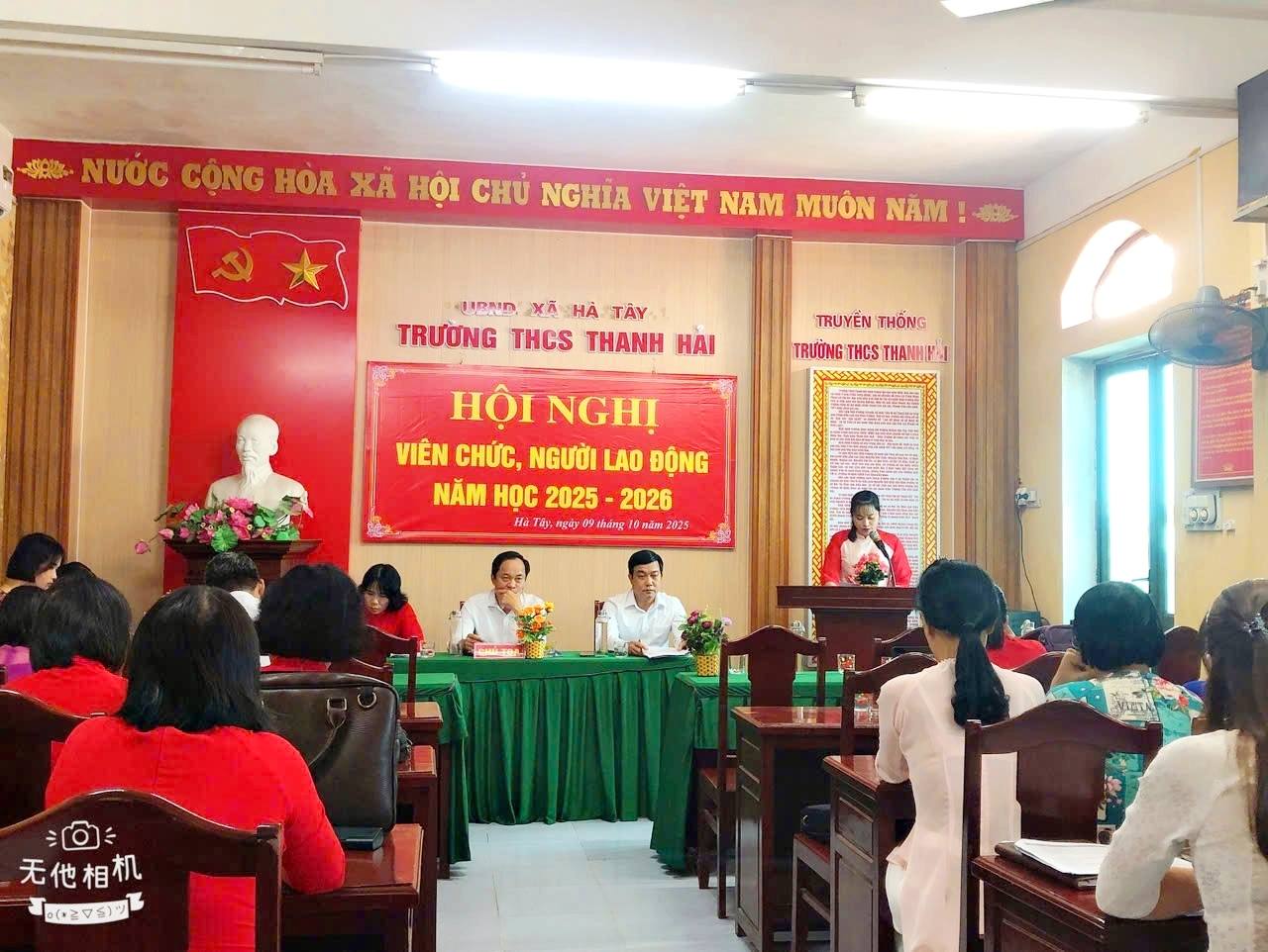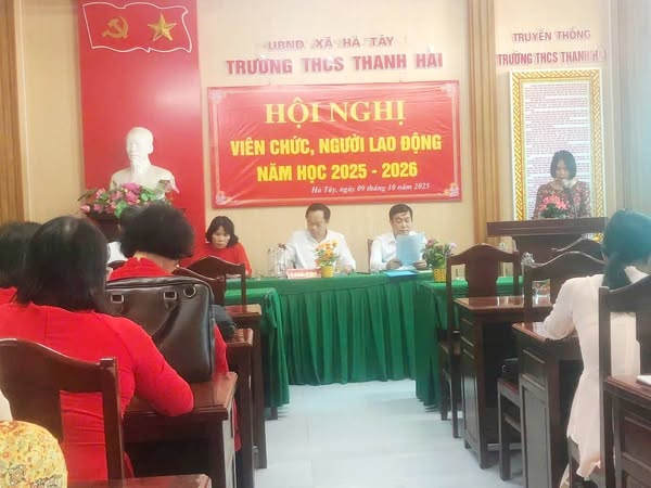 Chiều ngày 09/10/2025, Trường THCS Thanh Hải đã long trọng tổ chức Hội nghị Viên chức – Người lao động năm học 2025 – 2026. Hội nghị nhằm đánh giá kết quả thực hiện nhiệm vụ năm học 2024 – 2025, đồng thời đề ra phương hướng, mục tiêu và các giải pháp thiết thực cho năm học mới.