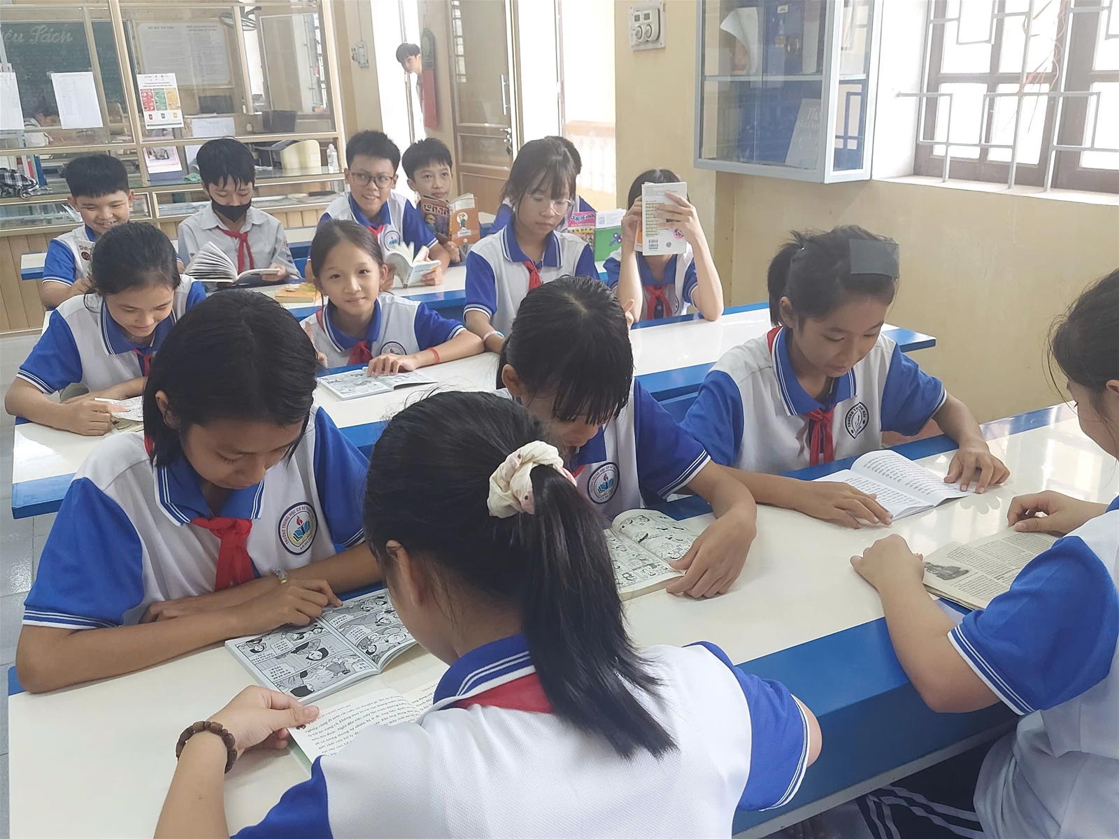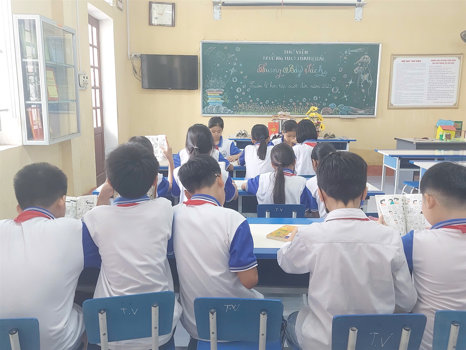 - Hoạt động đọc sách: Trưng bày, giới thiệu sách. Tổ chức cho học sinh đọc sách và tham gia các hoạt động văn hóa, thể thao do nhà trường tổ chức như cờ vua, cầu lông…