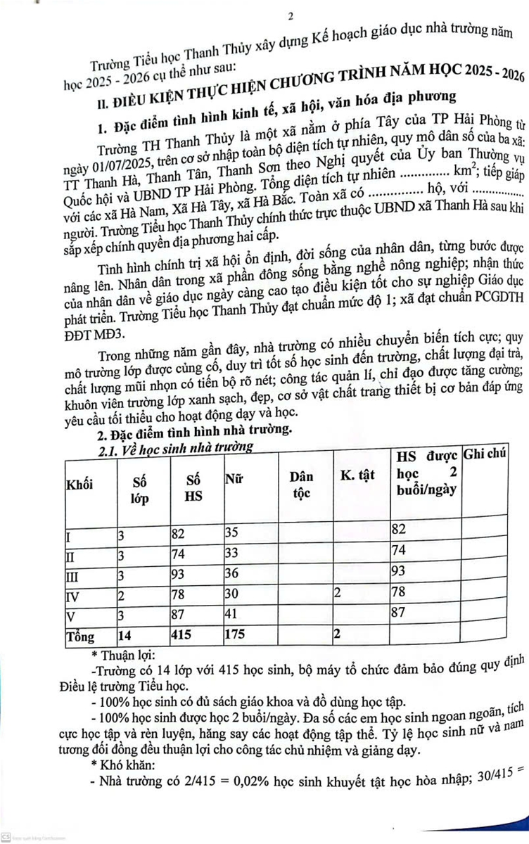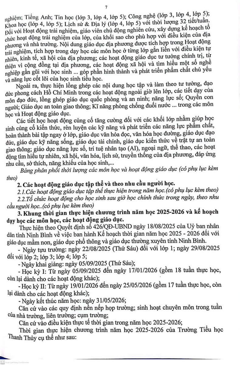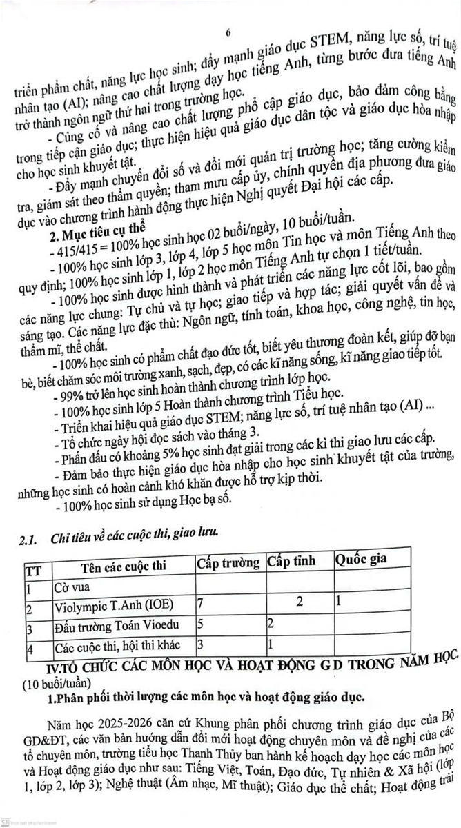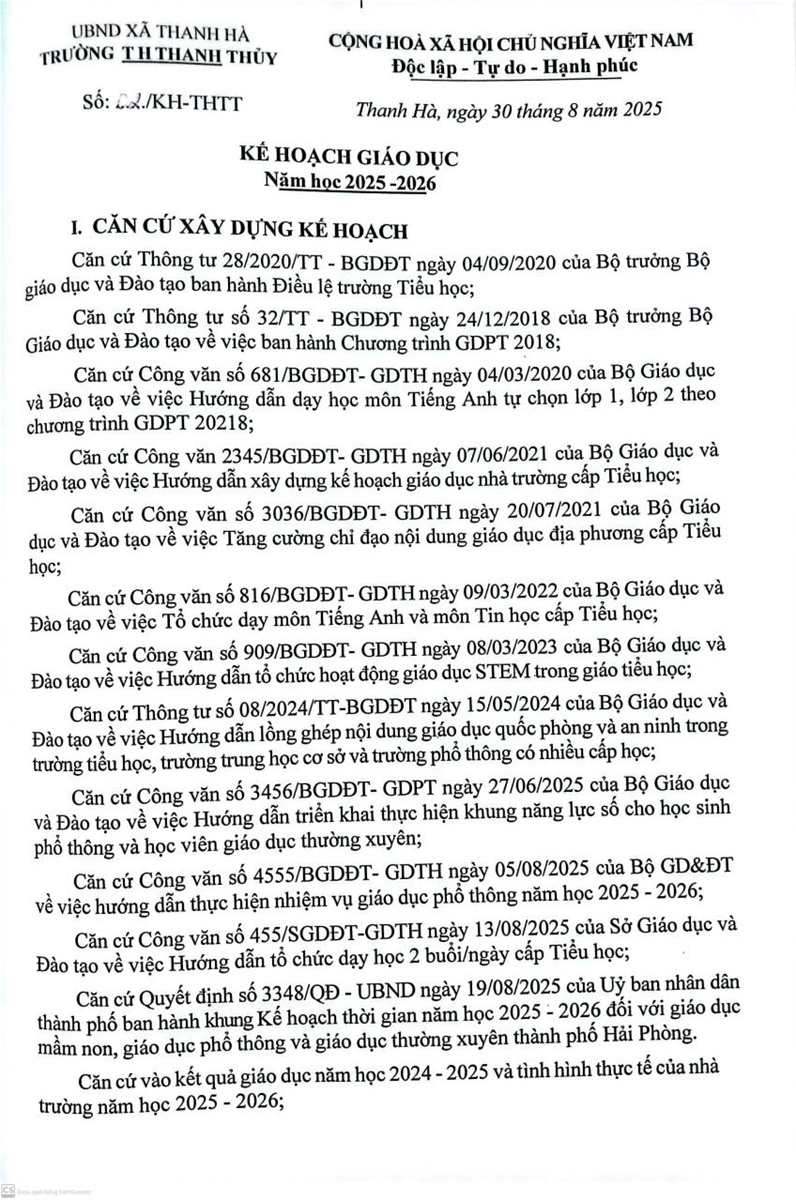 (Tiểu học Thanh Thuỷ) Kế hoạch giáo dục năm học 2025 - 2026 ...