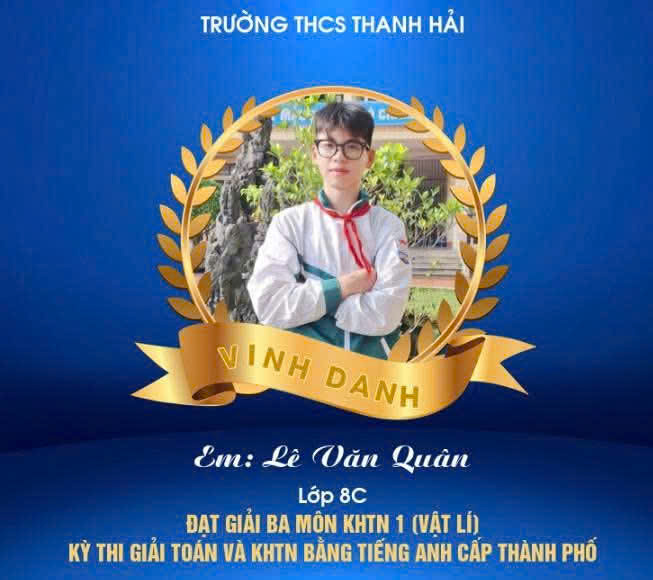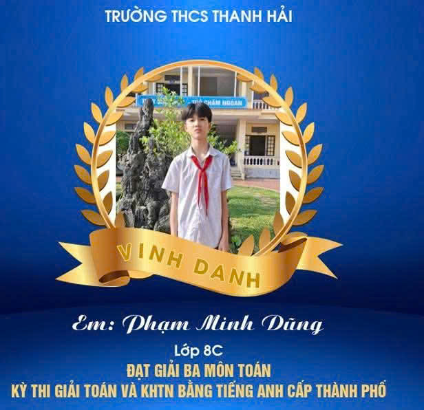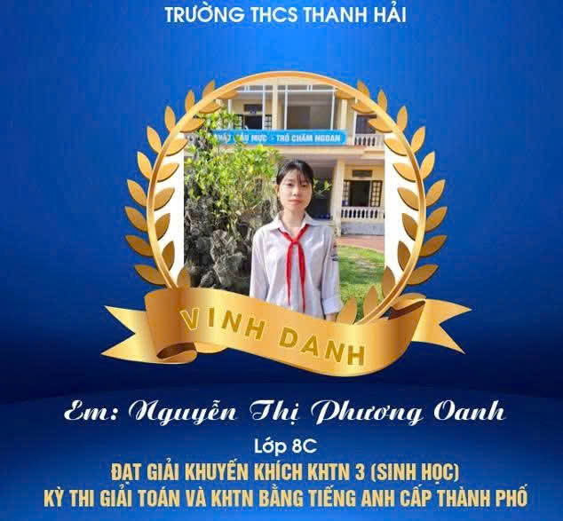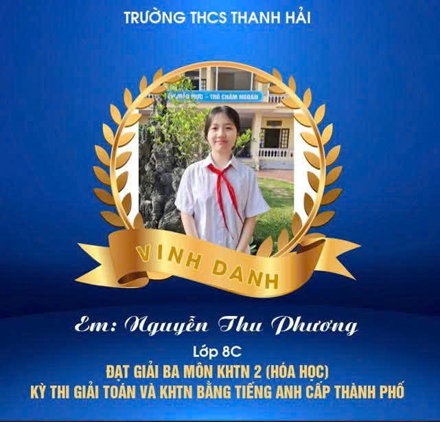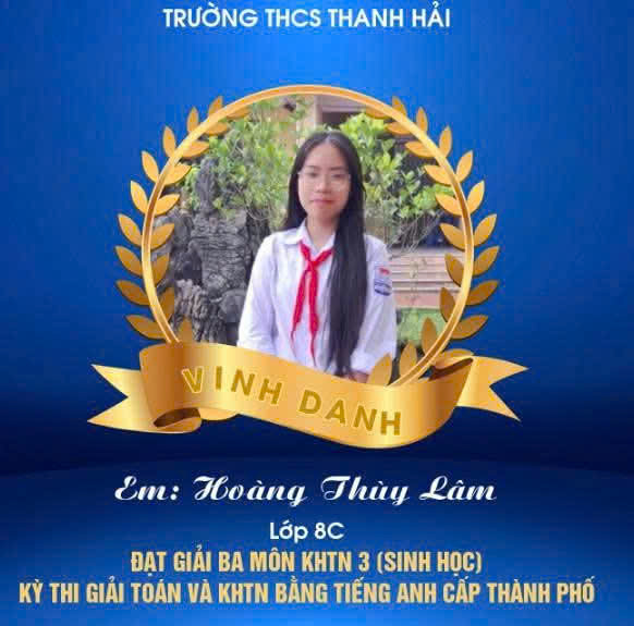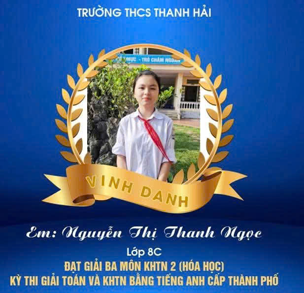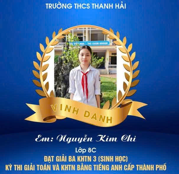 Một lần nữa, xin chúc mừng các em học sinh! Chúc các em tiếp tục tỏa sáng, chinh phục những đỉnh cao tri thức mới, góp phần làm rạng danh trường THCS Thanh Hải.
