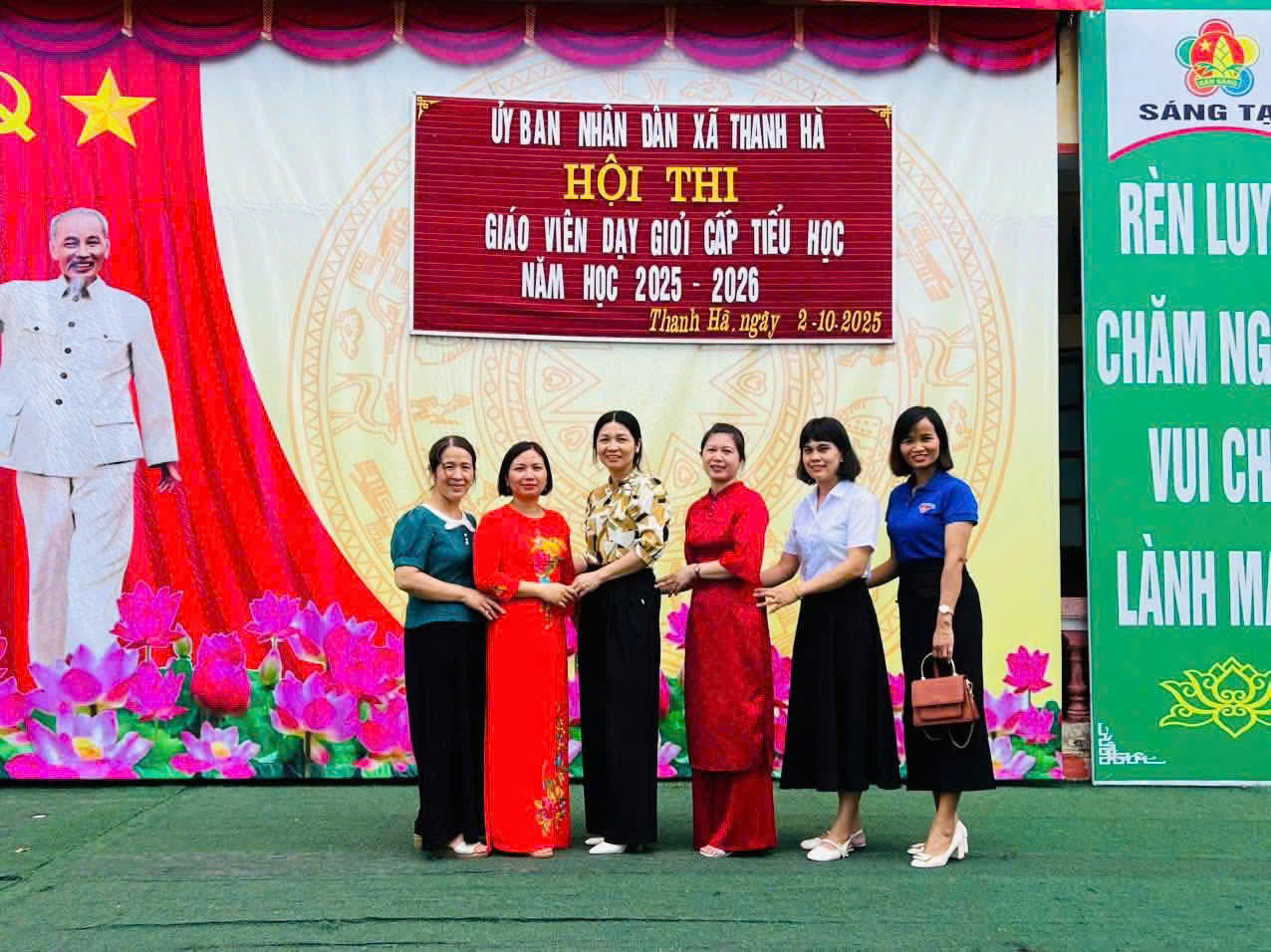 Thực hiện công văn số 5954/SGDĐT-GDTH ngày 26 tháng 8 năm 2025 của Sở Giáo dục và Đào tạo thành phố Hải Phòng về việc hướng dẫn thực hiện nhiệm vụ giáo dục Tiểu học năm học 2025-2026; Thực hiện Kế hoạch số 43/KH - UBND ngày 09 tháng ̣̣9 năm 2025 của UBND xã Thanh Hà về việc tổ chức Hội thi giáo viên dạy giỏi cấp Tiểu học. Trường Tiểu học Thanh Khê cô giáo Phạm Thị Minh và cô giáo Đỗ Thị Kim Huế tham gia Hội thi ; kết quả cả 02 cô giáo đều đạt danh hiệu GVG cấp xã năm học 2025 - 2026. Xin chúc mừng các cô giáo.