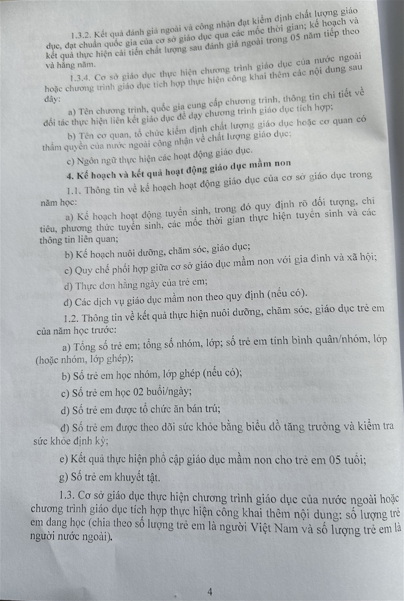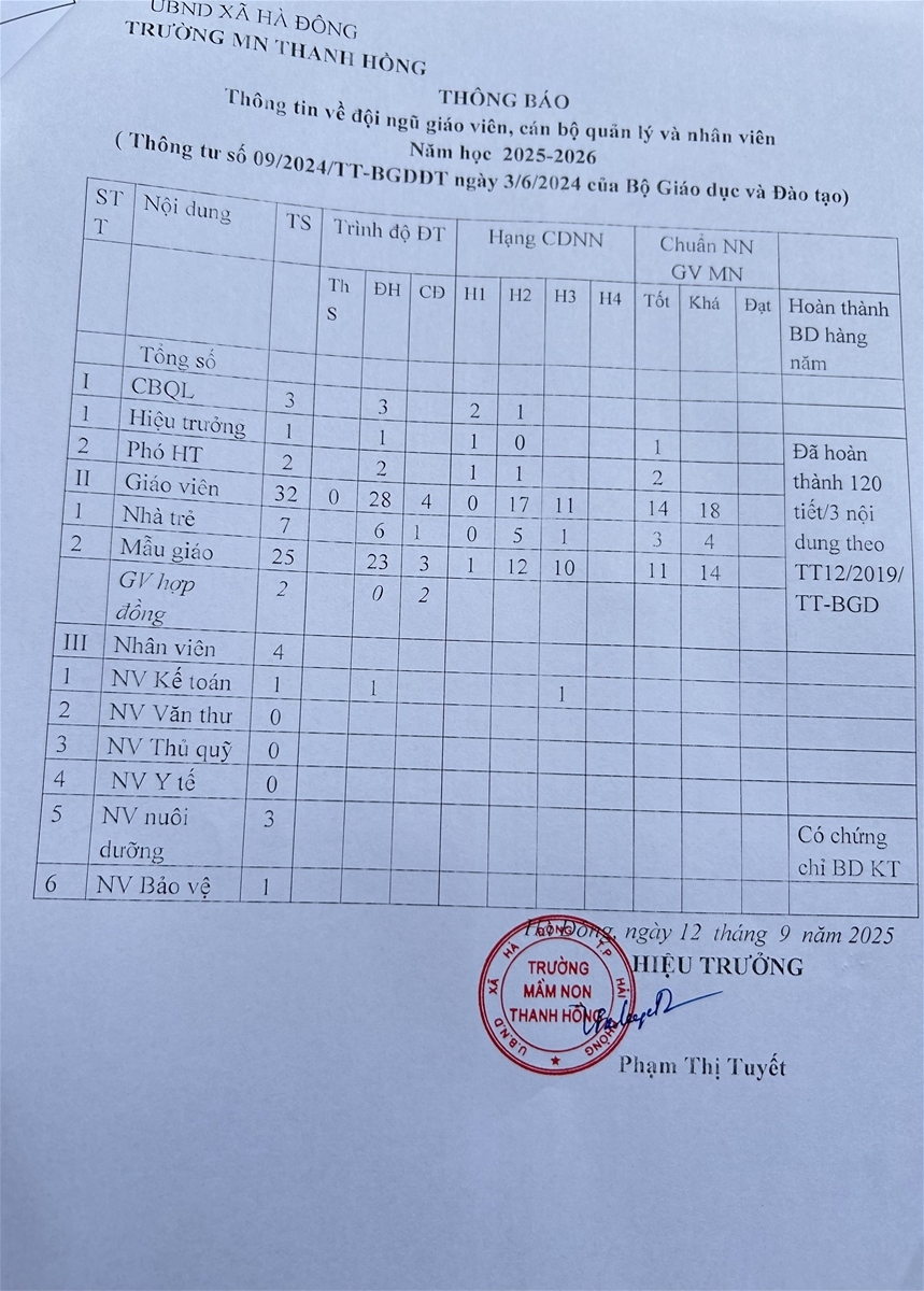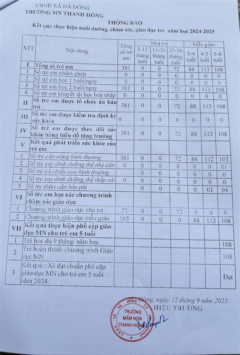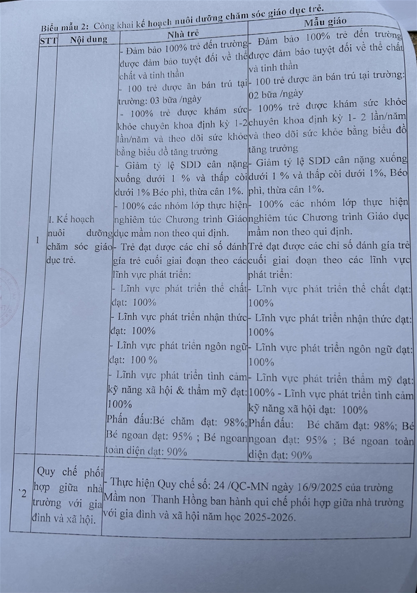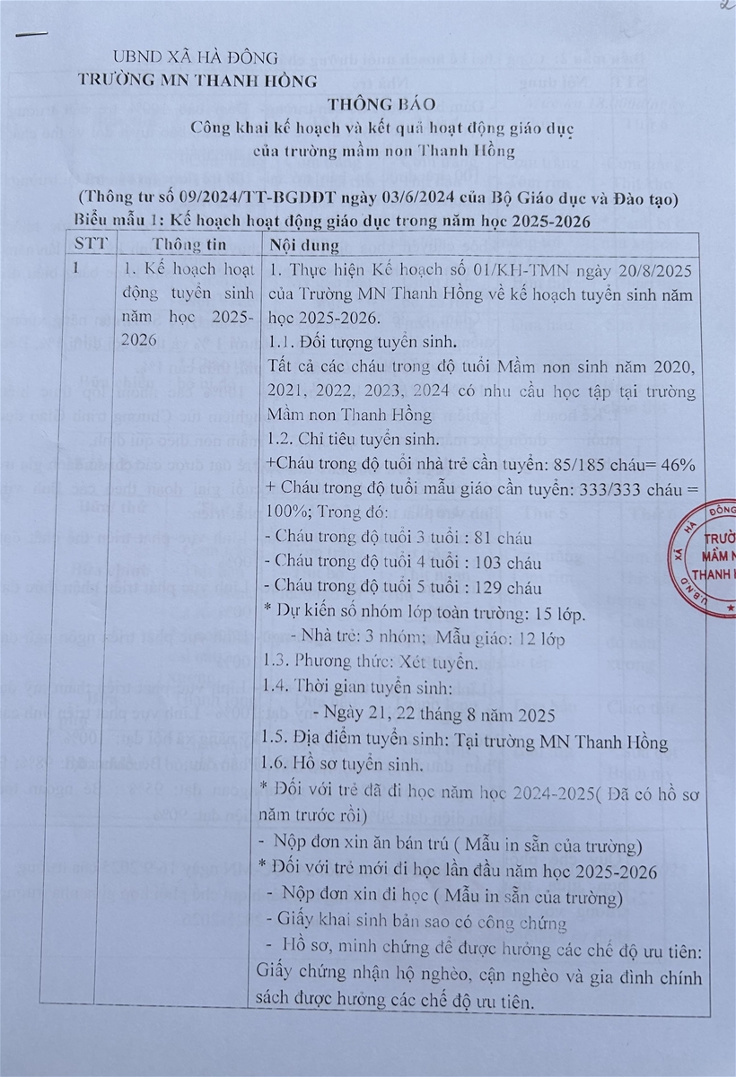 - Kế hoạch và kết quả hoạt động giáo dục của trường mầm non Thanh Hồng