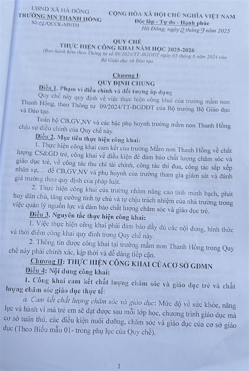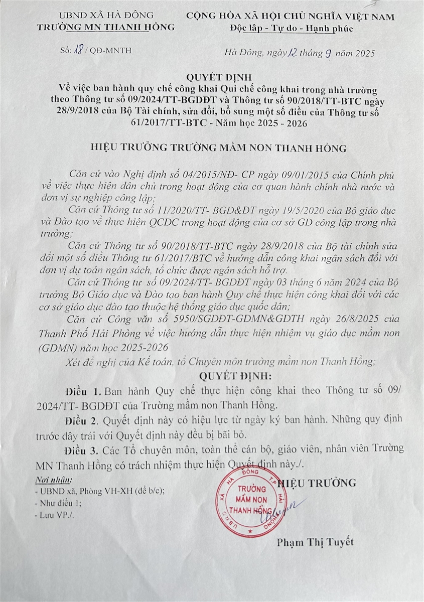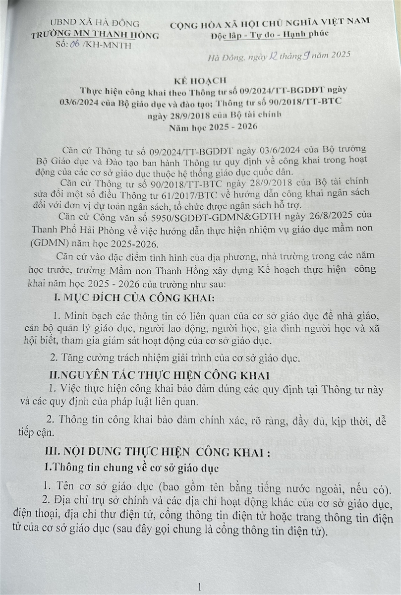 - Kế hoạch thực hiện công khai theo Thông tư 09/2024/TT-BGDĐT Năm học 2025-2026